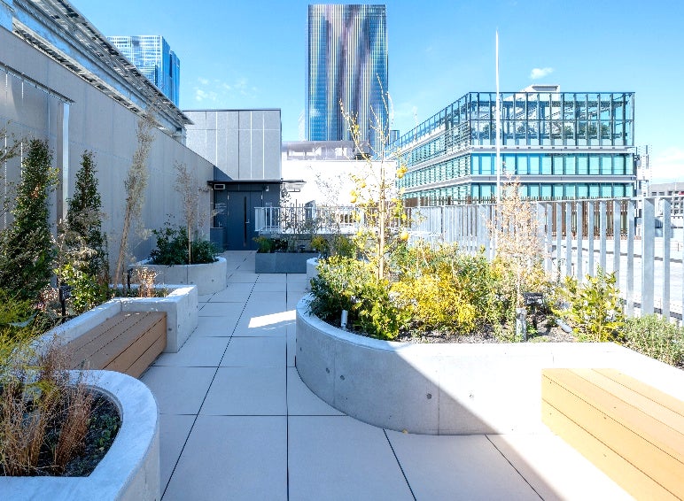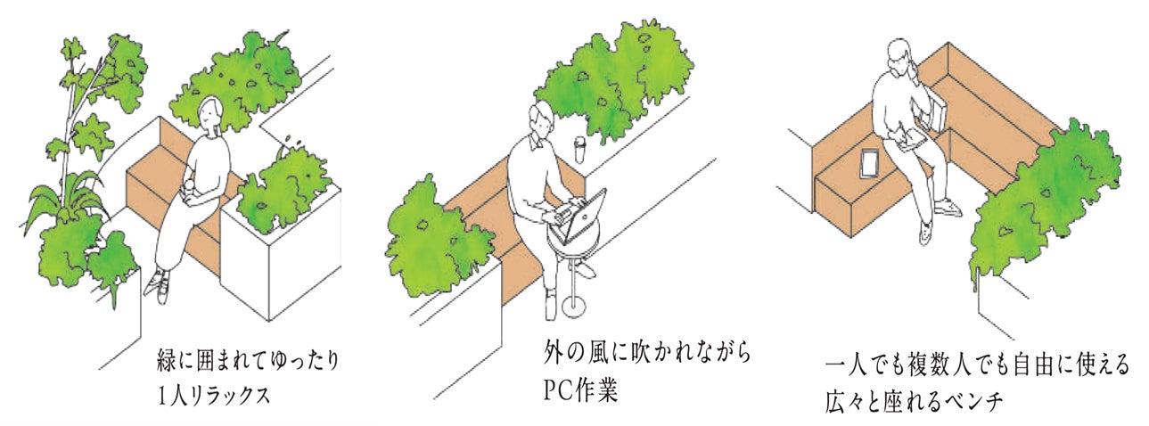 ・屋上庭園は、開放的で眺望の良い空間としました。ワーカーのランチタイムや気分転換にご利用