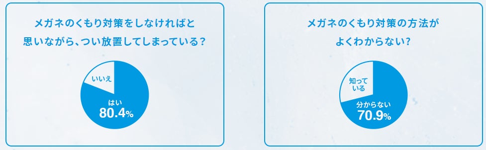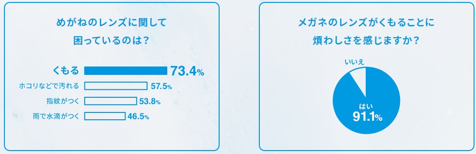 - メガネのレンズがくもることは煩わしいものの、80%以上の方が何の対策もせずに放置していることが判明