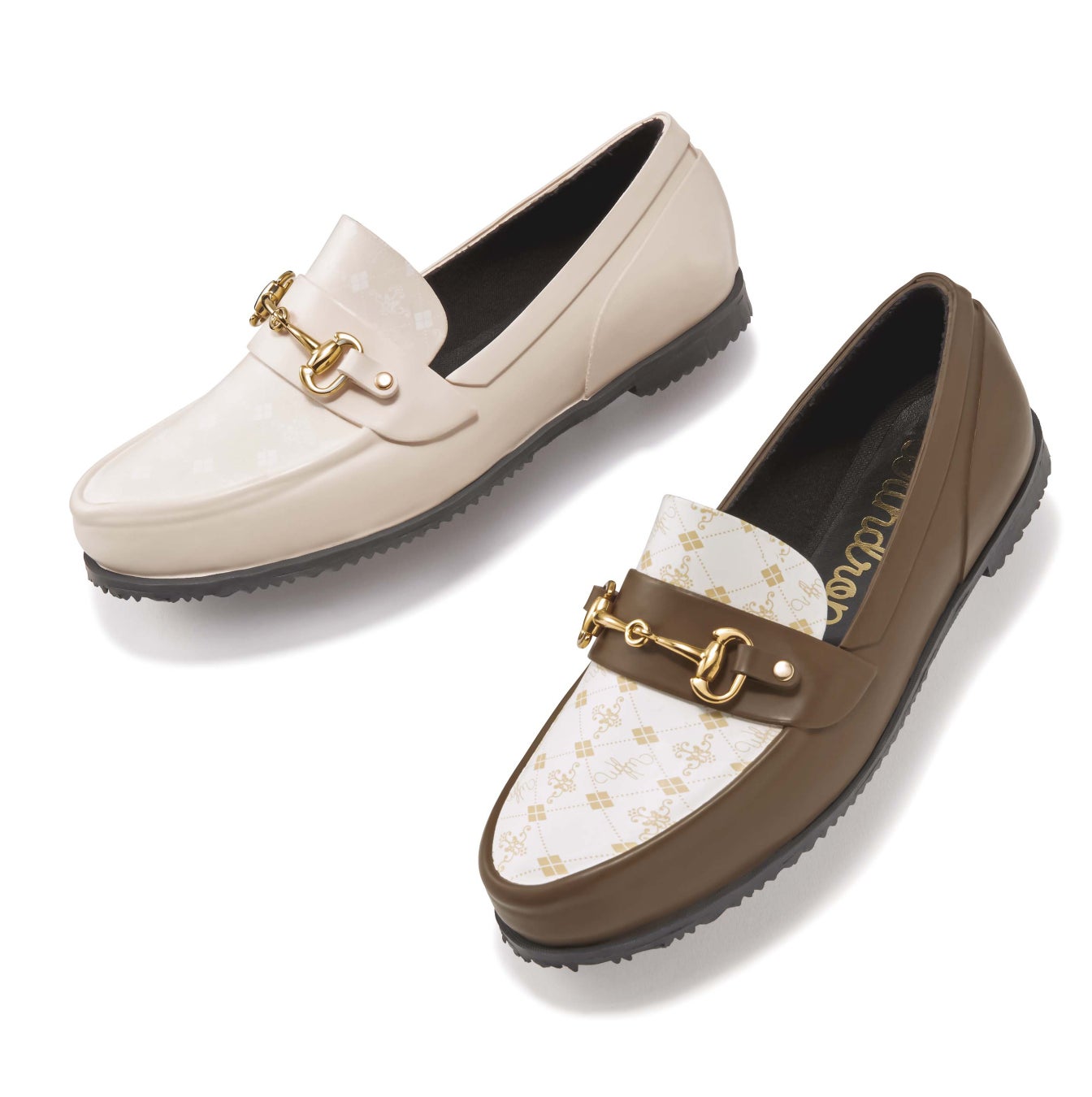 レザー見えするゴム素材のレインシューズで雨の日も快適に。
