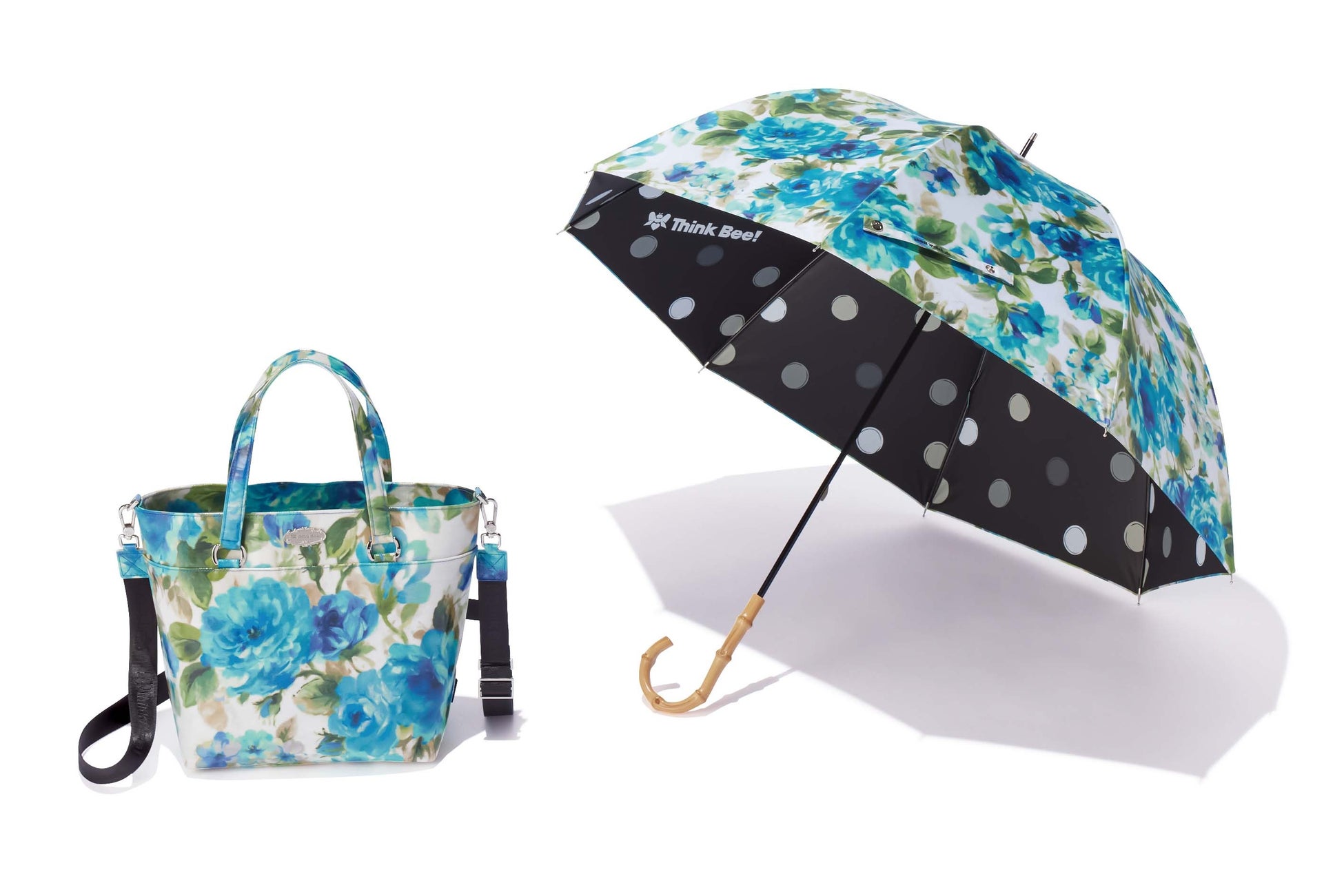 ブルーの花柄がチャーミング!バッグと傘をおそろいで。