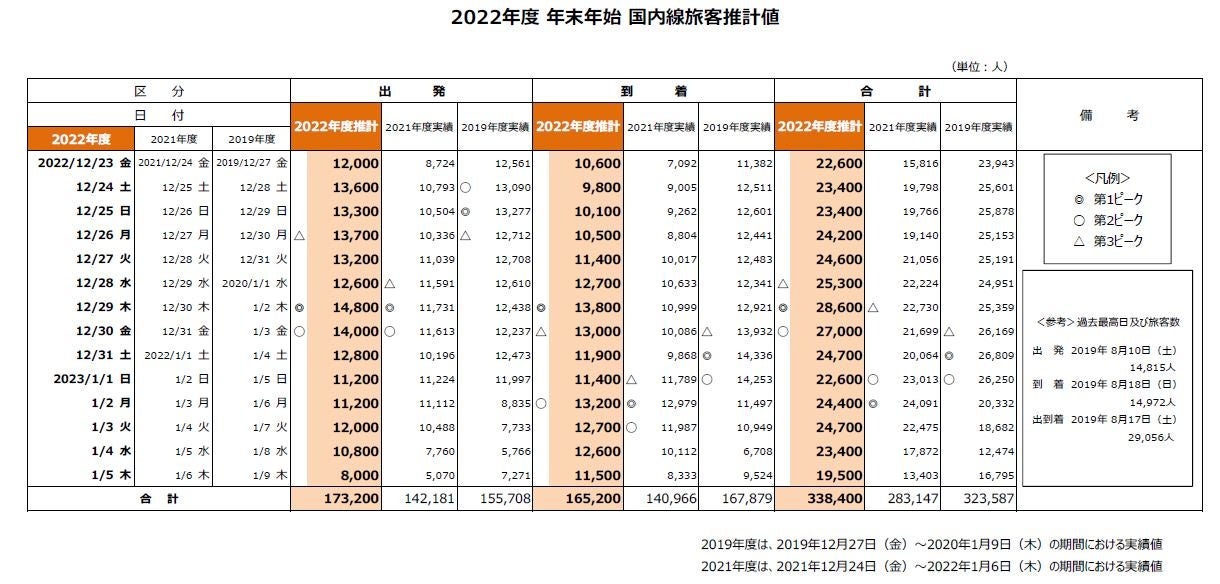 なお、本推計は、当空港がコロナ禍からの回復途上にあり、このような状況下でのデータ蓄積が十分で
