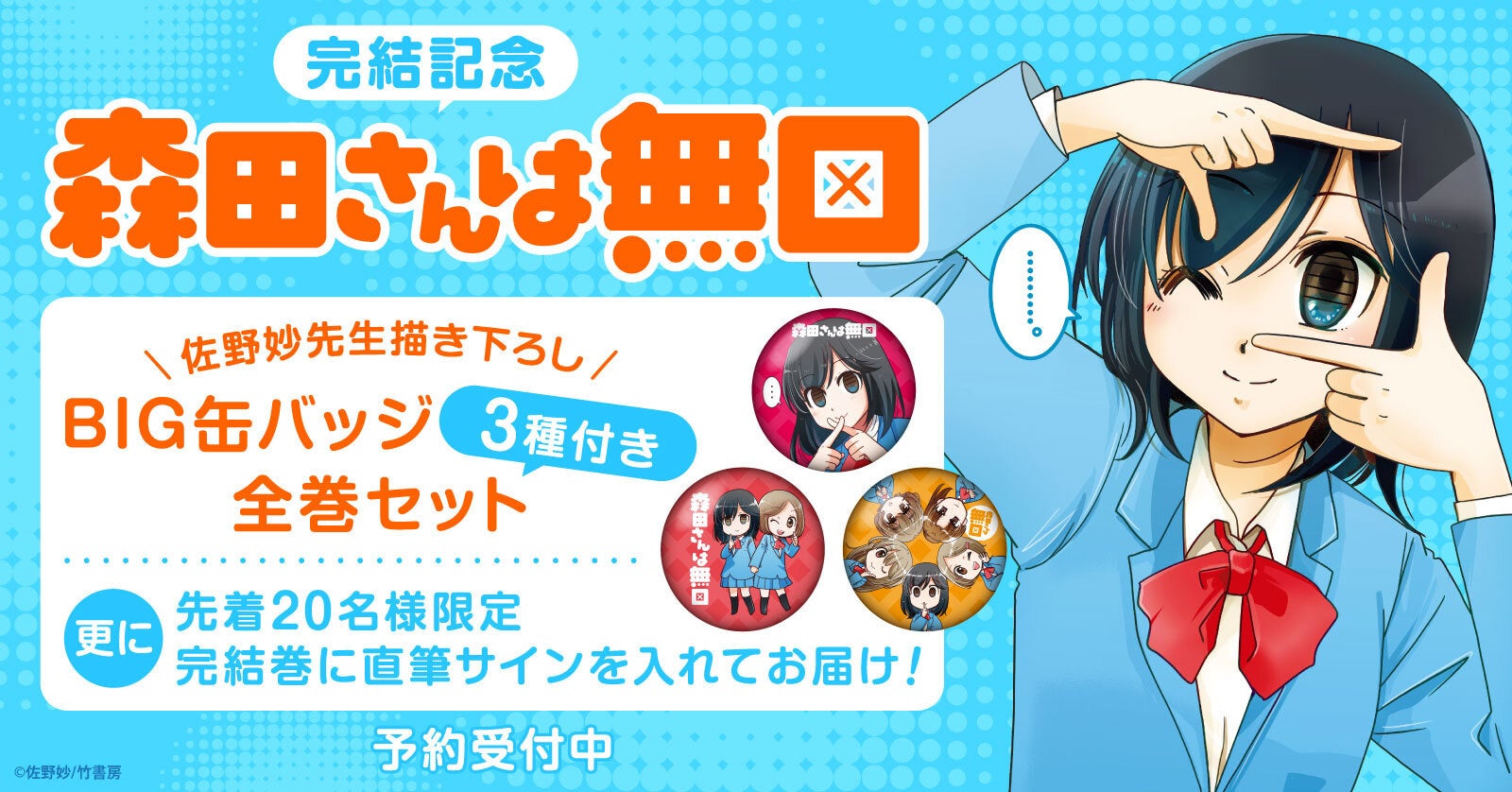 数量限定サイン本も!『森田さんは無口』描き下ろしBIG缶バッジ3種付き全巻セット予約受付開始!【漫画全巻ドットコム】