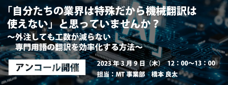 AI自動翻訳のロゼッタ ウェビナー『自分たちの業界は特殊だから機械翻訳は使えない」と思っていませんか? 〜外注しても工数が減らない専門用語の翻訳を効率化する方法〜』3月9日(木)開催