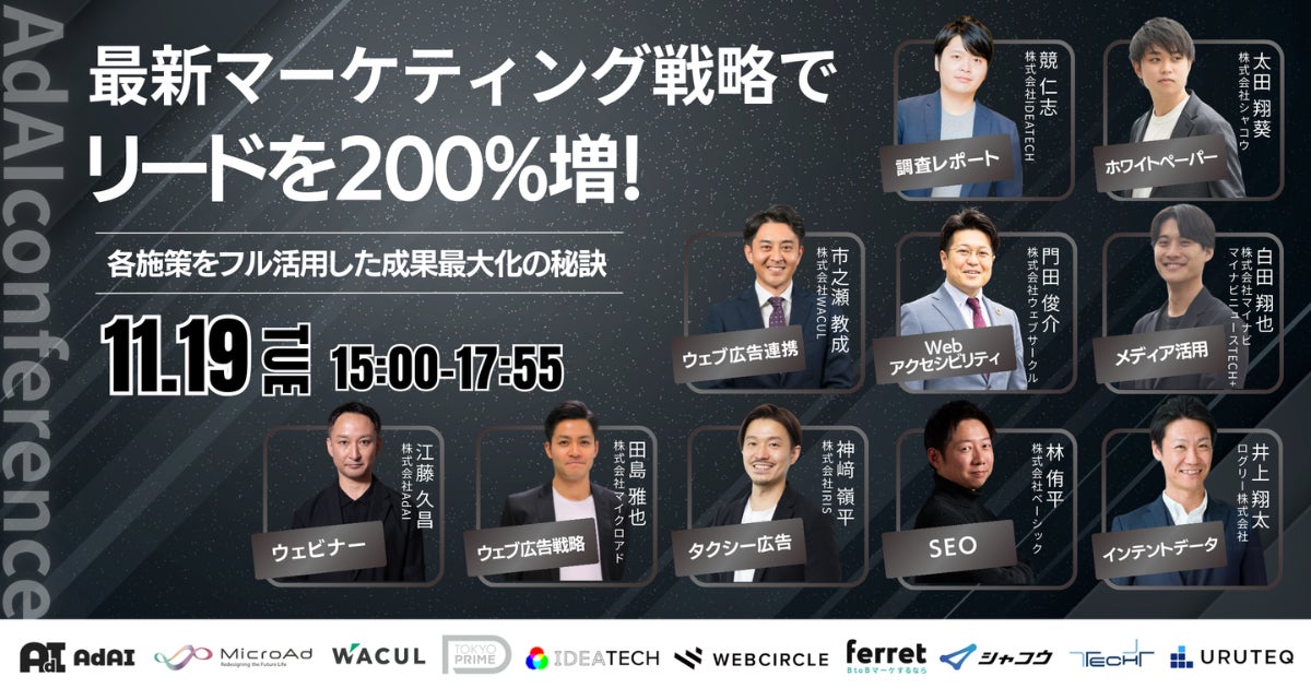 このウェビナーでは、広告、SEO、メディア連携、ホームページ最適化、WEB接客ツール調査レポートを組み合わせて、リード獲得を劇的に向上させるための最新の実践手法を紹介します。AdAI、マイクロアド、ベーシック、TECH+(マイナビ)、WACUL、IDEATECHといった各分野のエキスパートが、実務に活かせる具体的な戦略を提案します。