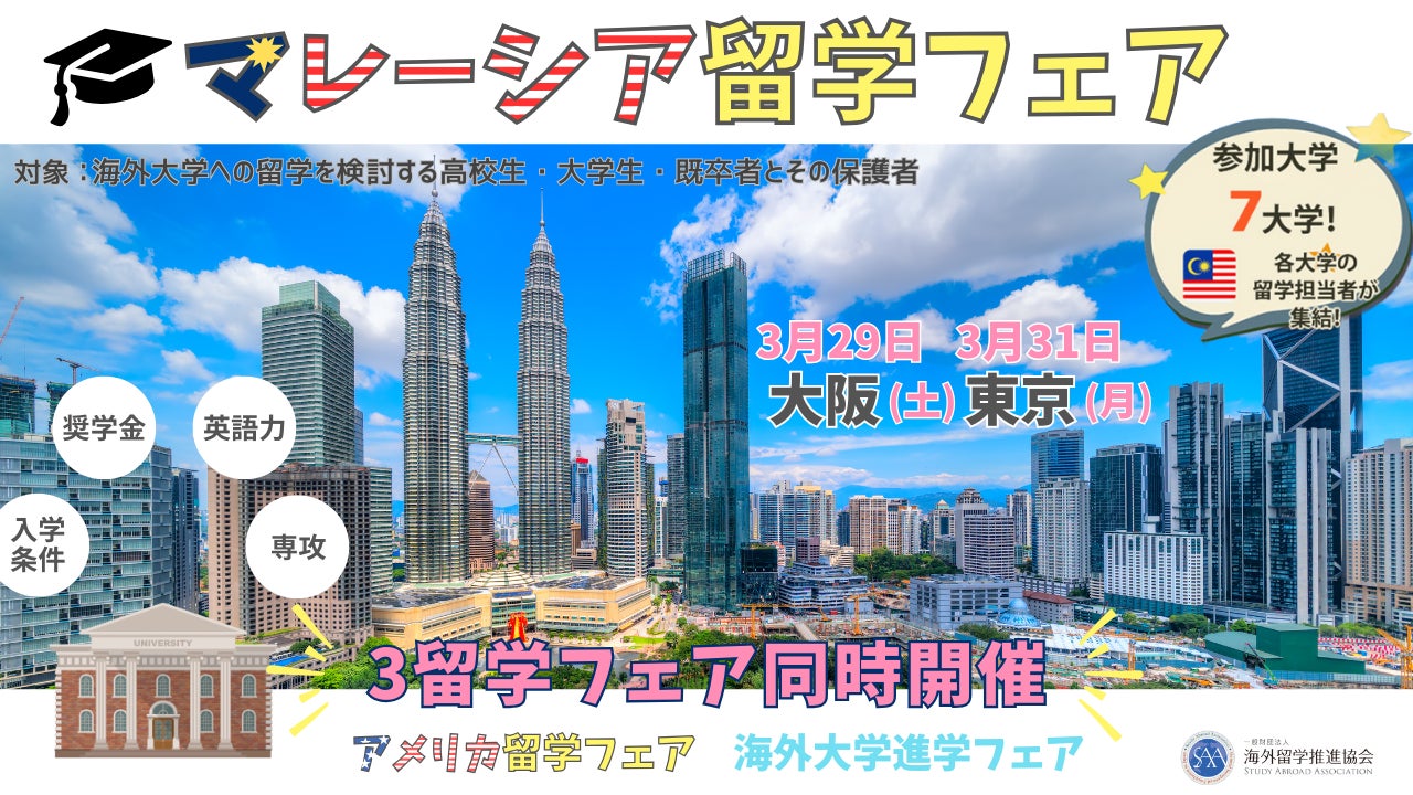 Zenken株式会社(所在地:東京都港区、代表取締役社長:林 順之亮、以下 Zenken)と業務委託契約を結んでいる一般財団法人 海外留学推進協会は、マレーシアの名門大学を招聘し、「マレーシア留学フェア」を3月29日に大阪、31日に東京で開催いたします。