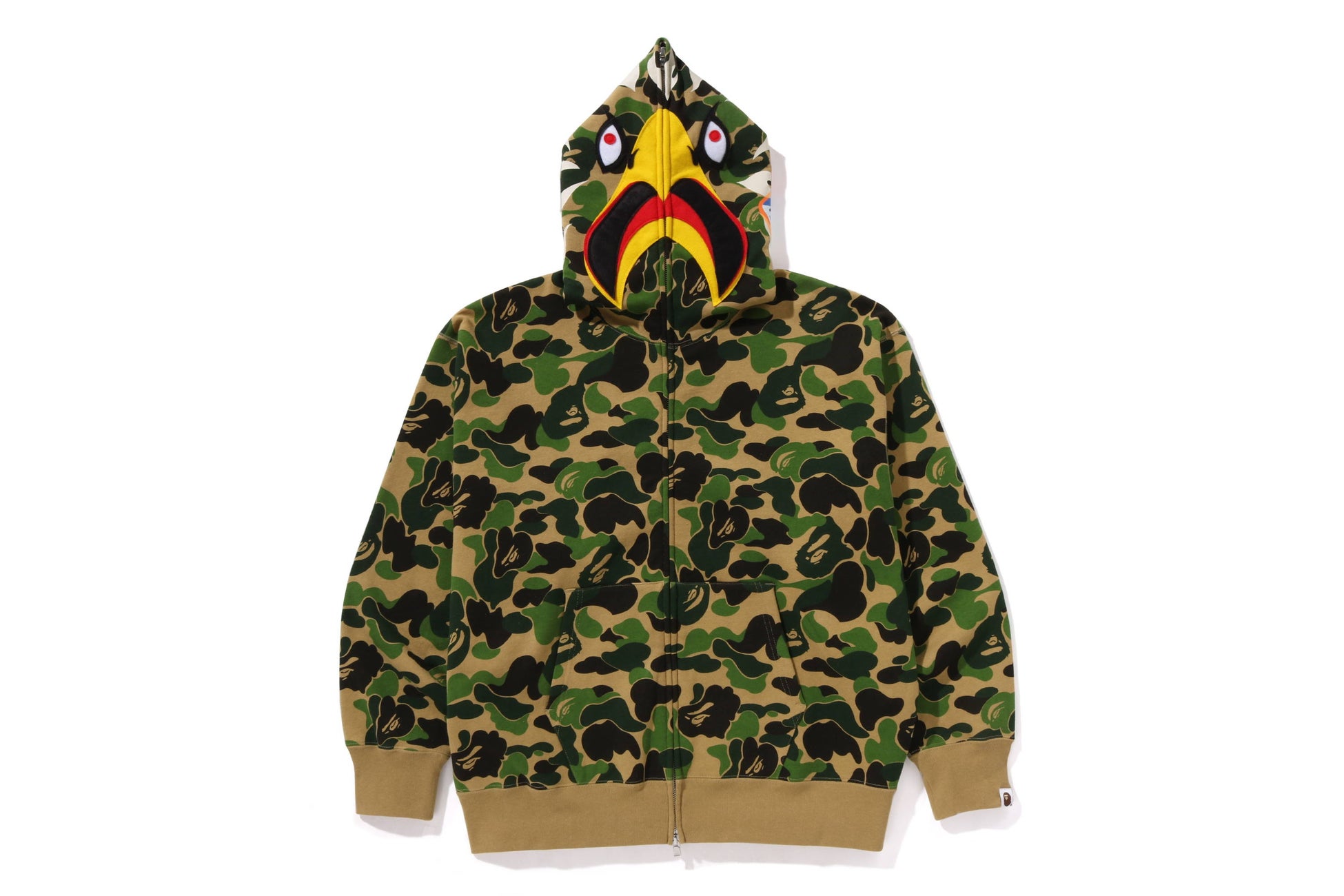 アパレルは、BAPE®️で不動の人気を誇るABC CAMO柄をプリントし、刺繍が施されたベトナムジャケットや、同じくABC CAMO柄の裏毛素材のジップアップフ―ディーとスウェットショーツがラインアップ。
