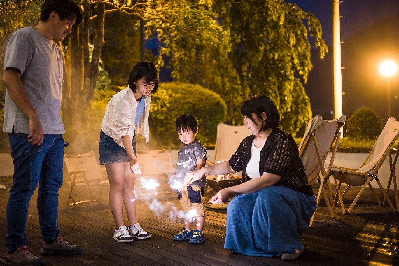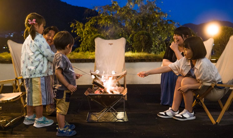 ホテル1階のウッドデッキにて焚火体験を行うことができます。薪の香りに包まれながら心地よい時間を過ごすことでリラックスし自然と一体になるひとときをお楽しみいただけます。焚火には「集中」と「リラックス」を自然な形で得られる効果があるとされており、普段は話せないようなことも自然と話せるようになりご家族の絆を深めることができます。岐阜のクラフトビールや焼きマシュマロもご用意しておりますので皆で火を囲みながら時間も忘れるような貴重な体験をご提供します。