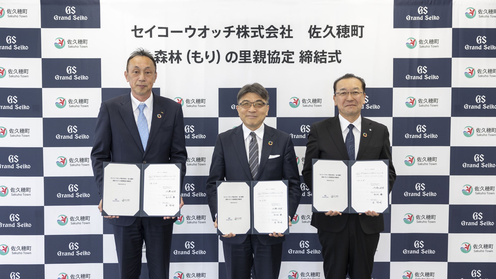 セイコーウオッチ株式会社(代表取締役社長:内藤 昭男、本社:東京都中央区)は、長野県南佐久郡佐久穂町(町長:佐々木 勝氏)と「森林(もり)の里親協定」(※1)を、長野県の立ち会いのもと2024年3月21日に締結いたしました。
