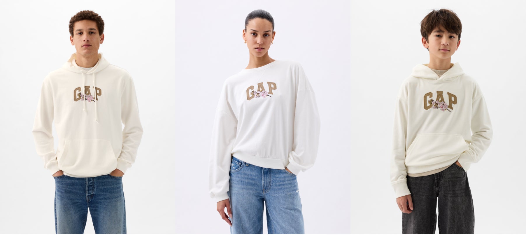 Gap、桜モチーフのロゴスウェットやTシャツなどが並ぶSAKURAコレクションが日本限定で発売