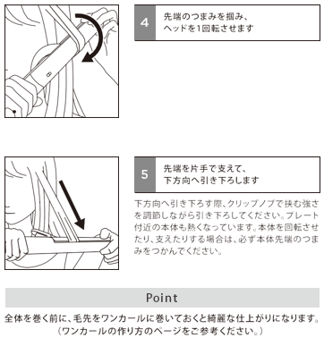 2.独自設計の両面凸面のカールプレートで 細かいニュアンス作りも