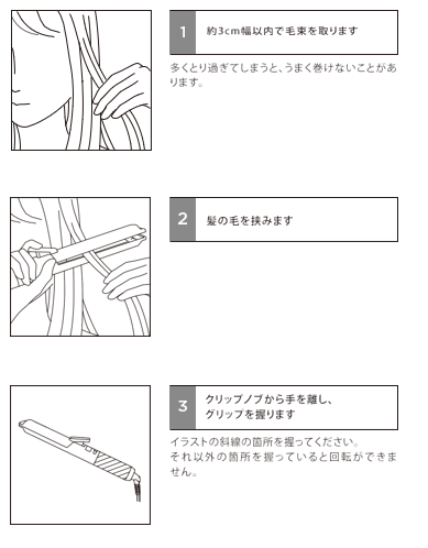 しっかりカールやニュアンスカール、顔まわりのふんわりワンカールも 、回転が自在に調整できることで、好みの仕上がりに調整しやすい構造です。