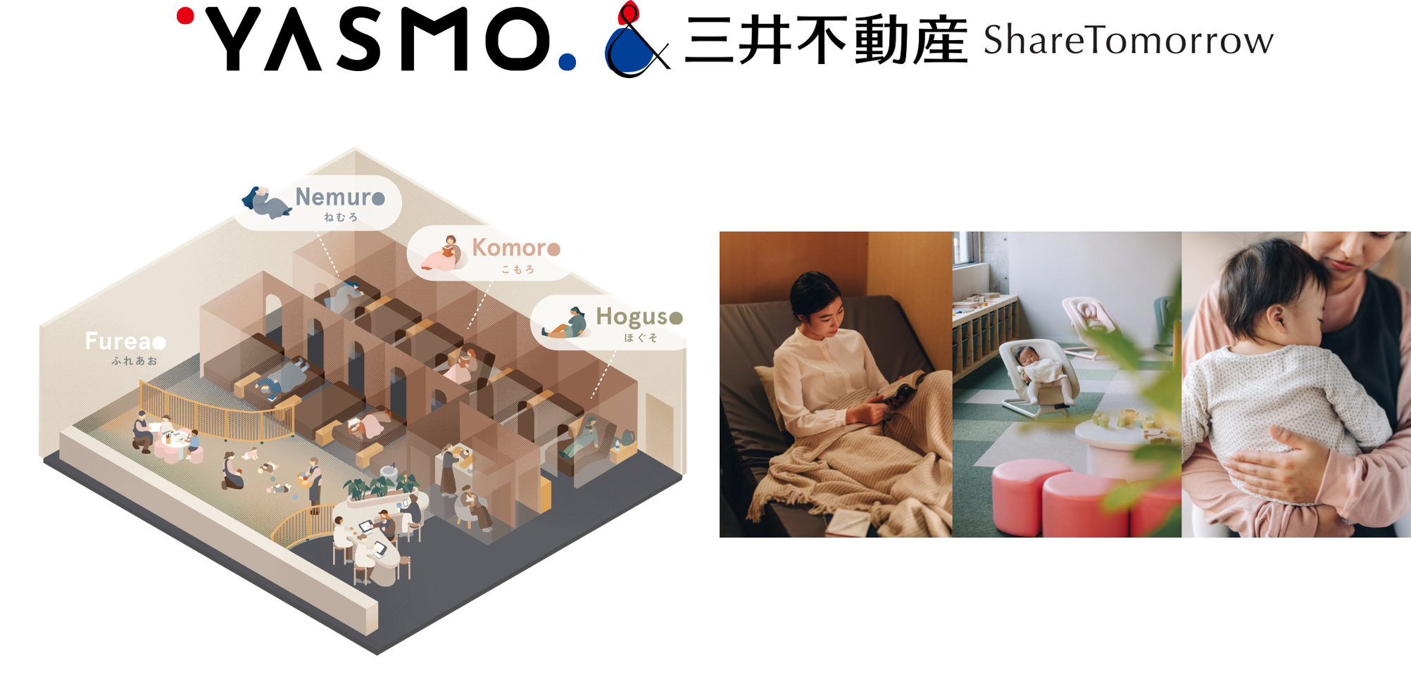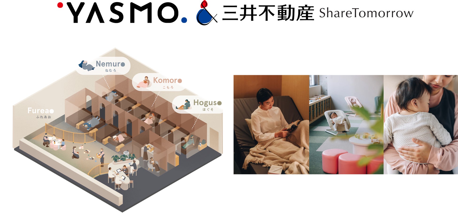 今回、『ドクターエア』は、三井不動産株式会社と株式会社Share Tomorrowの子育てしやすいまちづくりの取り組みに賛同し、〔YASMO 武蔵小杉〕の《Nemuro(ねむろ)・Komoro(こもろ)・Hoguso(ほぐそ)》の各コンセプトルームにて人気のボディケアツールをご用意いたしました。おやすみ不足のママ・パパへひと時の寛ぎを提供いたします。