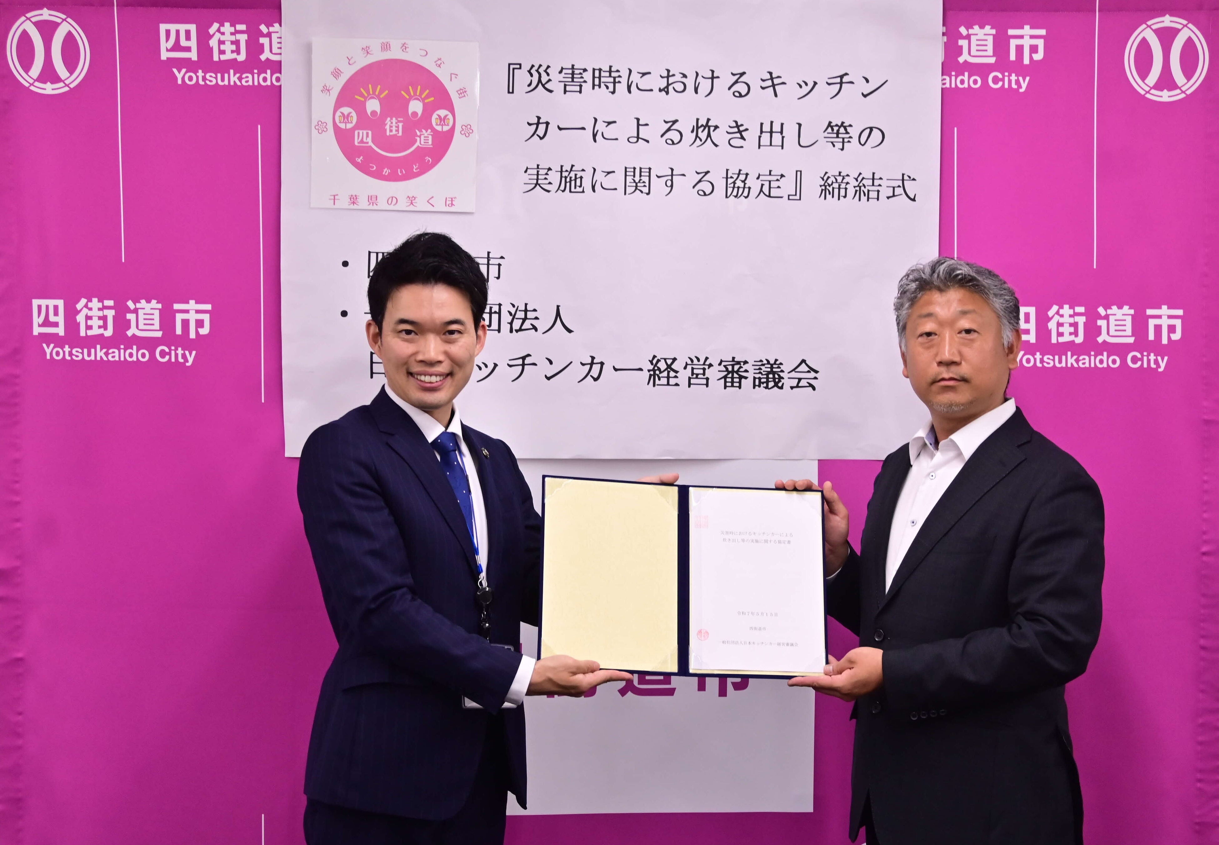 四街道市と一般社団法人日本キッチンカー経営審議会は、令和7年5月15日(木)に「災害時におけるキッチンカーによる炊き出し等の実施に関する協定」を締結しました。