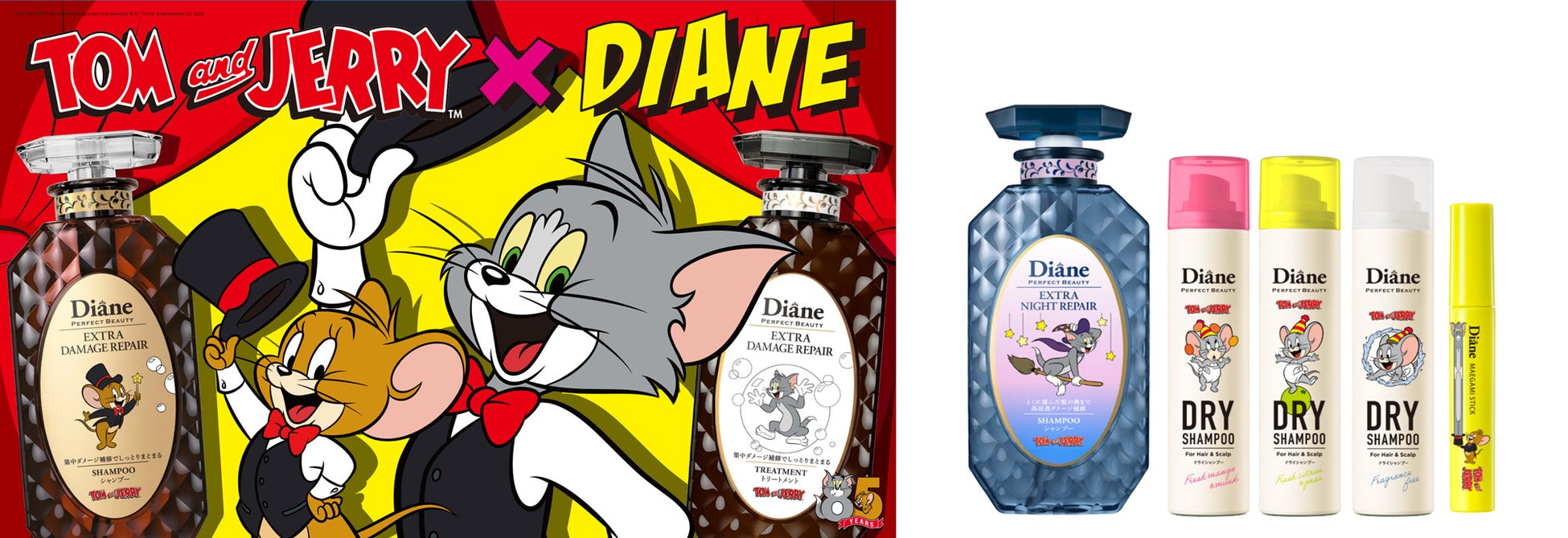 さまざまな髪の悩みや「きれいになりたい」という願いを叶えるために寄り添ってきた「ダイアン」。シャンプーやトリートメントなどのインバスアイテムから、マエガミスティックやドライシャンプーなどのアウトバスアイテムまで幅広い商品を展開してきました。世界中で愛されている「トムとジェリー」は、互いに追いかけ追いかけられ、けん制しあいながらも仲良くしている姿が印象的です。ケンカしても実は仲良しな「トムとジェリー」と、髪を思う人たちにとって相棒や仲間のような存在を目指す「ダイアン」、それぞれの輪を広げていく思いが合致して今回のコラボレーションにいたりました。