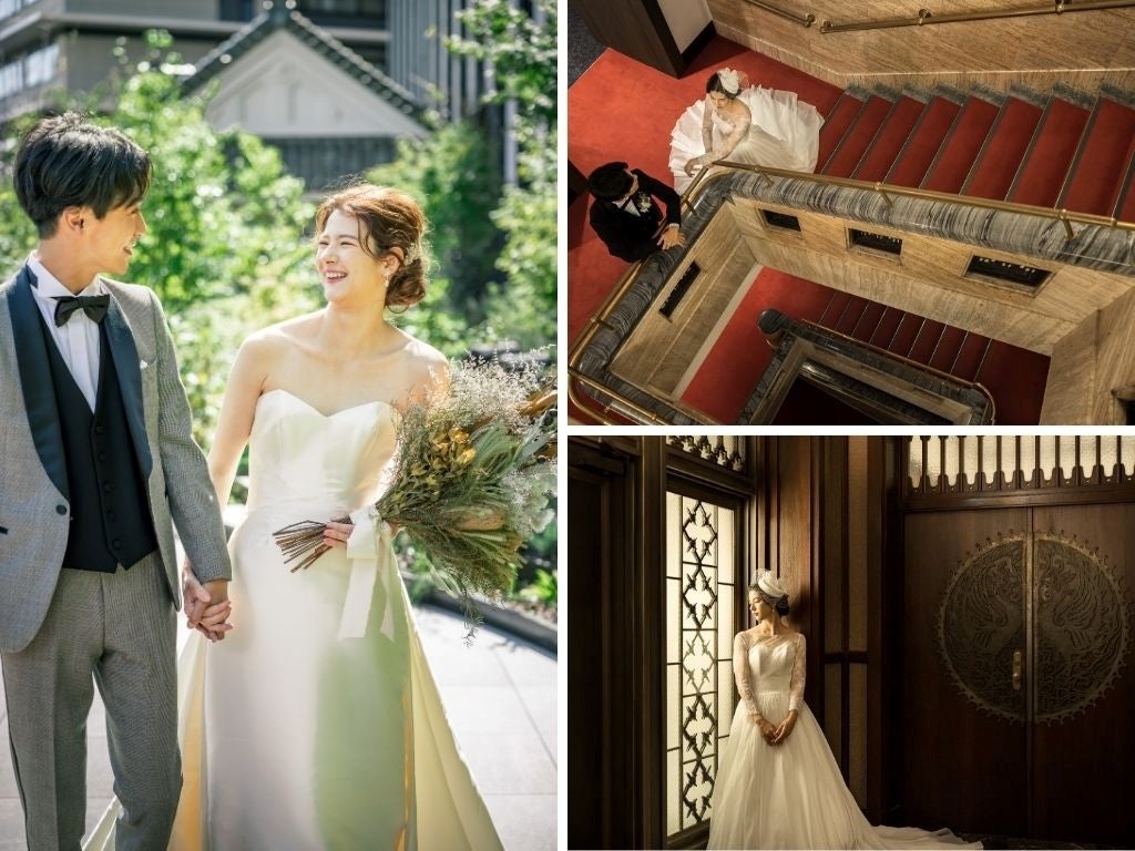 その一つである九段会館テラスは、登録有形文化財建造物である旧九段会館の貴重な技術・素材を活かして保存・復原を行った保存部分と、新築したオフィスビルの新旧が融合した建造物です。当社では、由緒あるその趣を残しながらも、長年紡がれてきたその歴史と現代のエッセンスが光る特別なウエディングプロデュースを実施してまいりました。