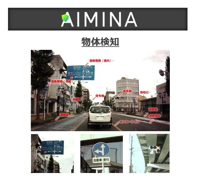 幅広い利用シーンに対応したAIを開発できる「AIMINA」において、中日本航空では、まず物体検知のAIモデルを作成しました。物体検知ではドライブレコーダーで撮影した画像データを用いて道路上の指示標識や道路標識、交通信号機などを検知し、データに写り込んでいる被写体がそれぞれ何かを識別しています。特に物体検知では、90%以上の精度で交通信号機を認識するAIモデルを作成することができました。ただし、異なるカメラや撮影地域ではうまく認識できないといった課題もあり、精度をさらに高めるため、AIモデル作成における改善のポイントなどを思索している段階です。今後、「AIMINA」で作成したAIモデルにより、作業者の経験やスキルに依存しない調査測量が可能になり、工数削減に繋がる見込みです。