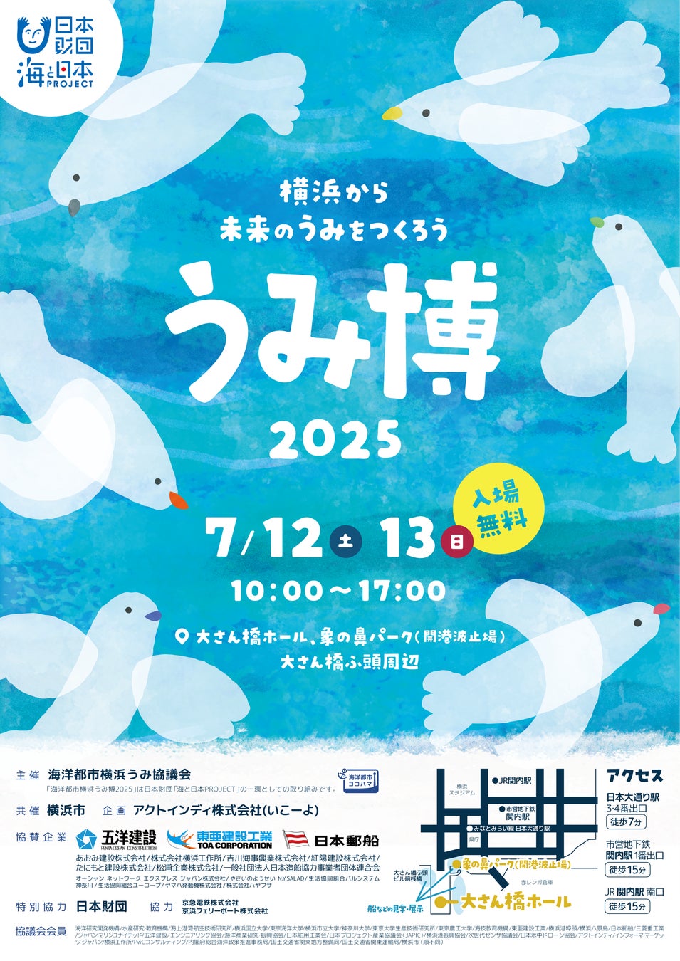 海洋都市横浜うみ協議会(注1)が主催し、子どもとお出かけ情報サイト「いこーよ(https://iko-yo.net/)」を運営するアクトインディ株式会社が企画開発する『海洋都市横浜 うみ博2025』の開催が決定いたしました。