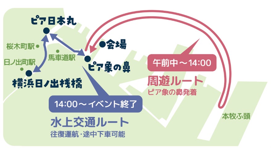 京浜フェリーボート(株)の「ゆめはま号」と「かなもえ号」の乗船体験を実施します。当日は、船の上から本牧ふ頭などの物流機能を見学する「周遊ルート」とピア日本丸や横浜日ノ出桟橋までを往復する「水上交通ルート」の2ルートでの運航を実施予定です。 ※乗船体験は予約が必要となります