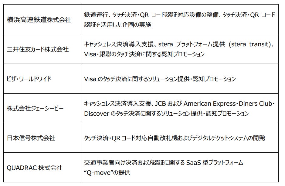 横浜高速鉄道株式会社(本社:神奈川県横浜市中区、代表取締役社長:森 秀毅)、三井住友カード株式会社(本社:東京都江東区、代表取締役社長:大西 幸彦)、ビザ・ワールドワイド・ジャパン株式会社(本社:東京都千代田区、代表取締役社長:シータン・キトニー)、株式会社ジェーシービー(本社:東京都港区、代表取締役兼執行役員社長:二重 孝好)、日本信号株式会社(本社:東京都千代田区、代表取締役社長:塚本 英彦)、QUADRAC株式会社(本社:東京都港区、代表取締役社長:高田 昌幸)は、みなとみらい線全駅で、三井住友カードが提供する公共交通機関向けソリューション「stera transit」を活用した、タッチ決済対応のカード(クレジット、デビット、プリペイド)や、同カードが設定されたスマートフォン等およびQRコード※を活用した鉄道乗車サービスの実証実験を2024年内に開始することを、発表します。