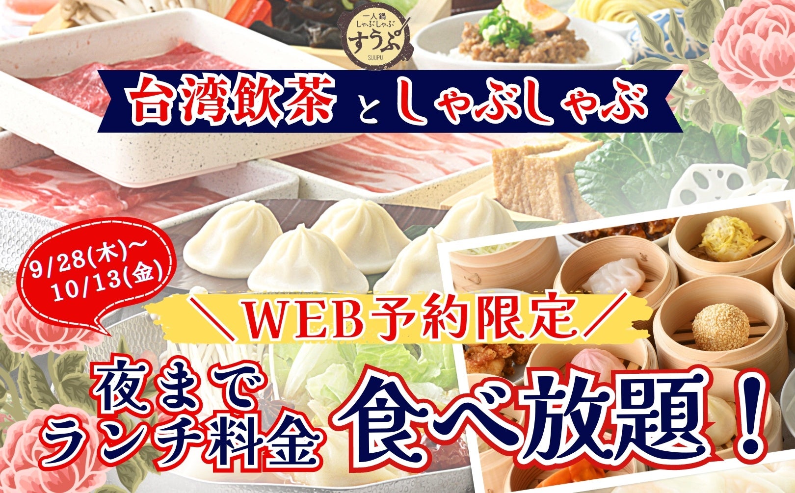 【ご好評につき再び開催‼】台湾飲茶や一人鍋しゃぶしゃぶが堪能できる“すうぷ静岡パルコ店”大好評の特別企画!10/13迄の平日WEB予約限定にて夜まで『ランチ料金』で楽しめるお得なキャンペーンを開催!