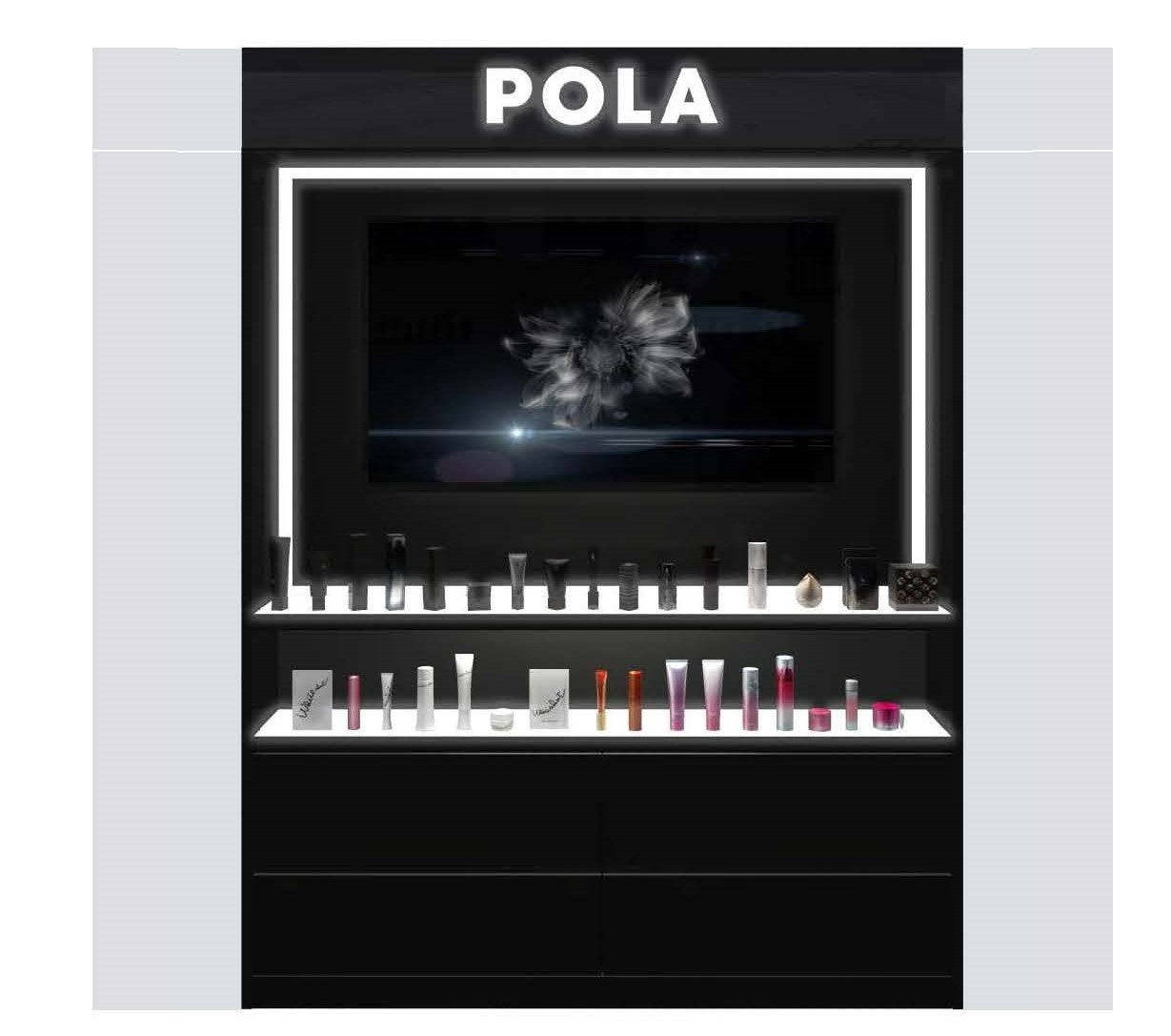 感性を刺激しポーラの世界観を表現する壁面什器と、気になるアイテムを自由に試せる中置什器の2つのゾーンで、お客様のニーズに応えます。