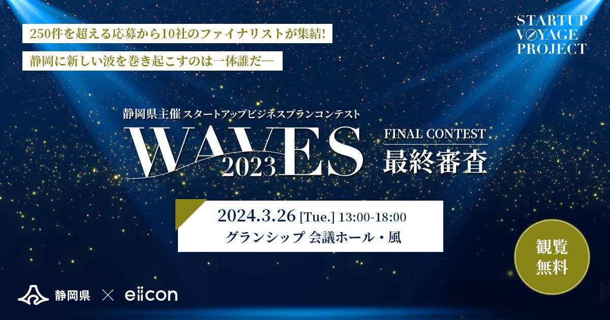 【静岡県 × eiicon】『静岡県主催スタートアップビジネスプランコンテスト WAVES』最終審査に進む10社が決定!最終審査観覧者の募集を開始!