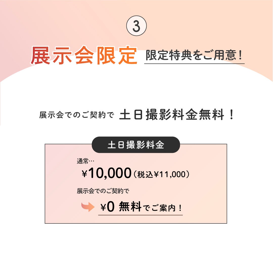 通常土日祝日撮影される場合プラス1万円(税抜)がご成約特典で無料。お休みが多い土日祝日に