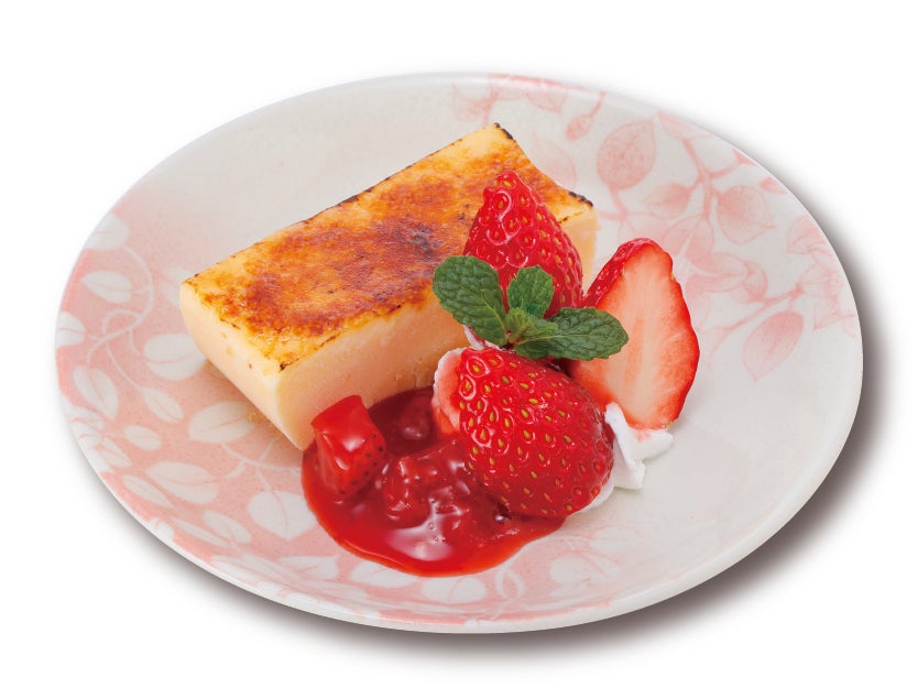 濃厚なカタラーナアイスをキャラメリゼし甘酸っぱいいちごソースを添えました。ほろ苦さとパリッと食感も楽しめる一品です。