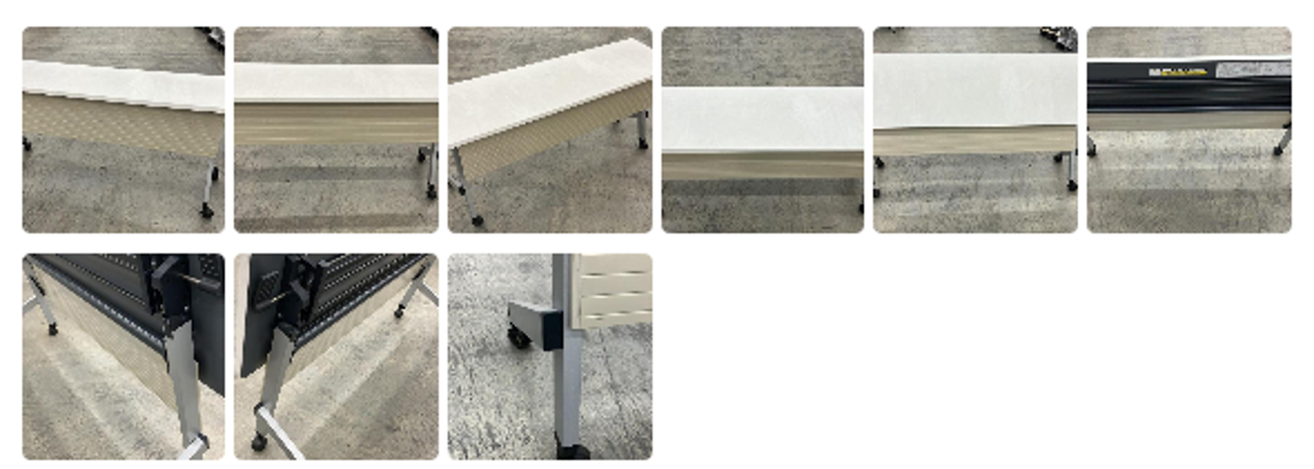 今回入荷したスタックテーブルは、キャスター付きで折りたたみが可能なため、設置・撤収・移動がスムーズで、限られたスペースでも効率的な運用が可能です。オフィスや研修室、学校、貸会議室など多様なシーンで活用でき、必要に応じてレイアウト変更にも柔軟に対応できます。中古オフィス家具として即時導入が可能であり、コスト面でも新品購入に比べて大幅な削減を実現します。