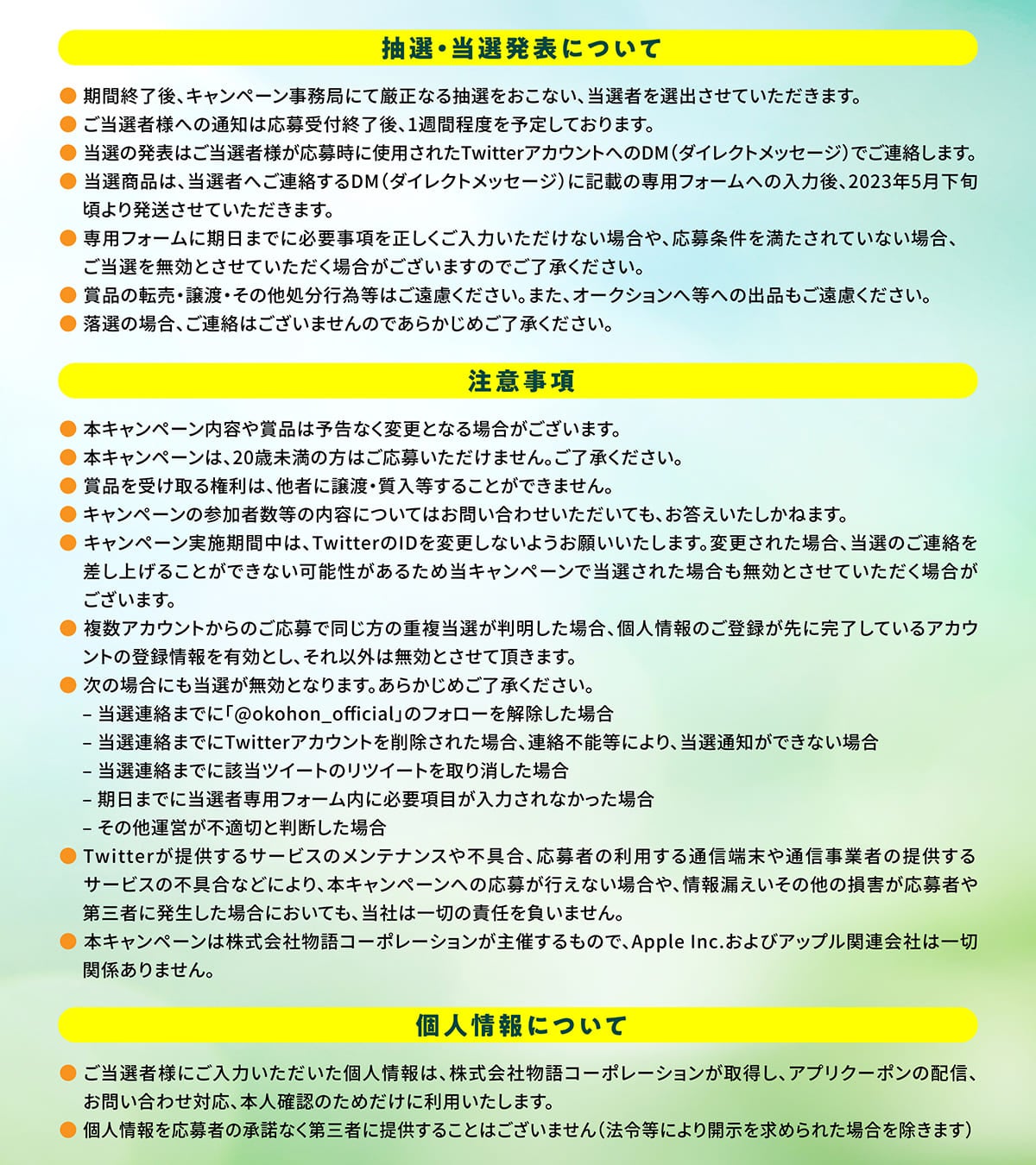 ・当選の権利及び賞品は、第三者へ譲渡・換金・転売・その他処分行為は禁止させていただきます