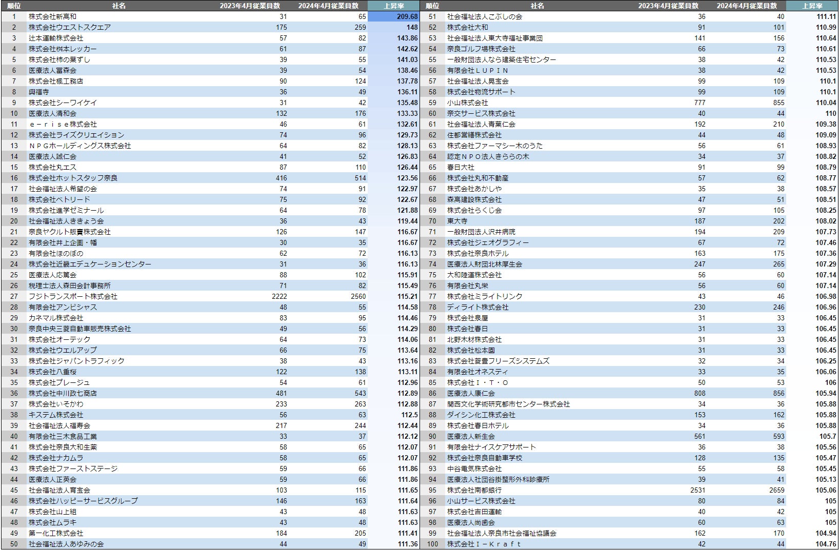 【奈良市】成長企業ランキングTOP100!/SalesNow DBレポート