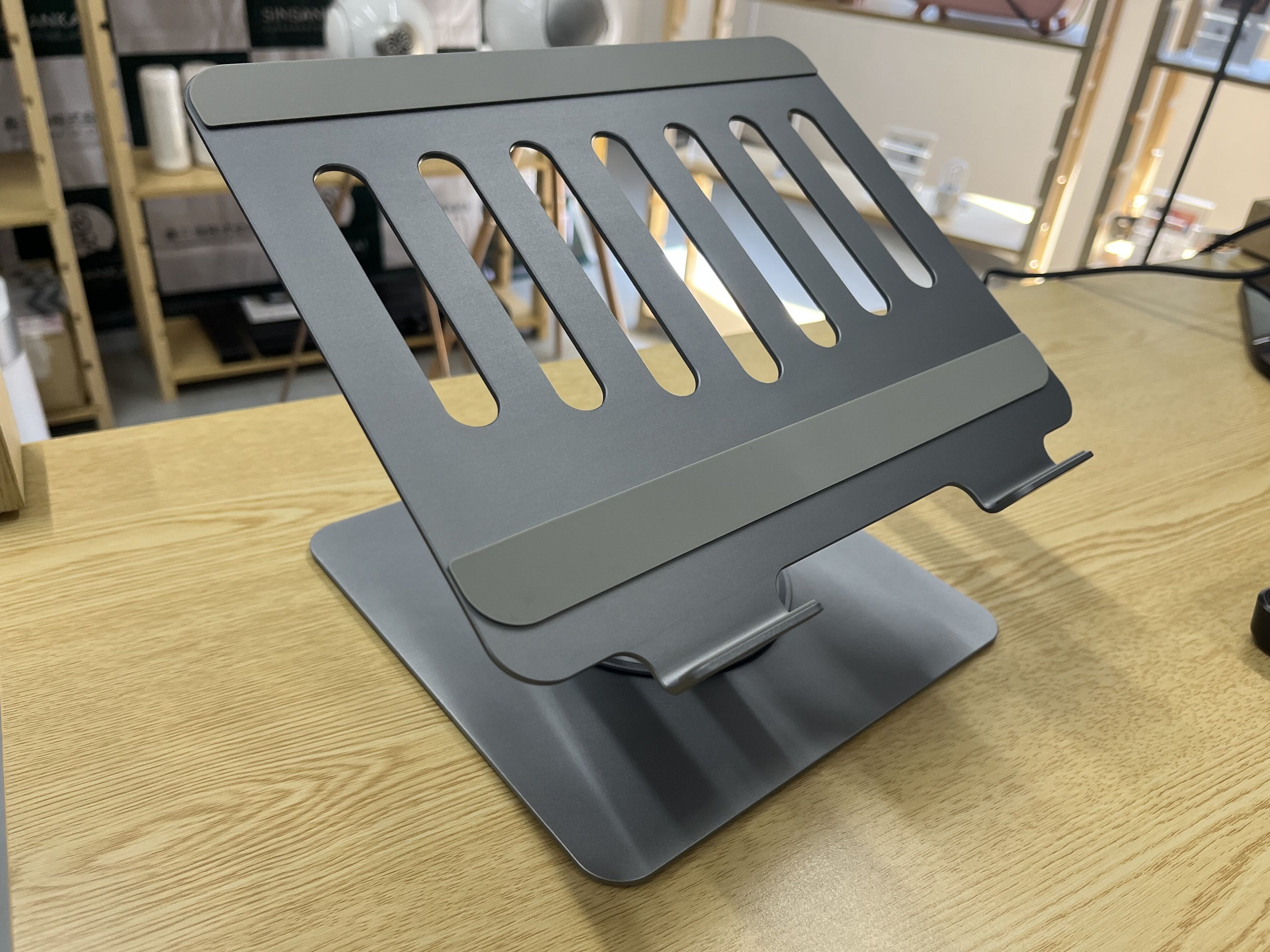 うつむき姿勢の作業から解放! 拡張ハブ付きPCスタンド「HC」社内展示会開催!
