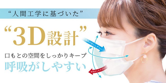 - 立体三層構造フィルターで安心の高性能と口元の空間をしっかりキープする3D形状