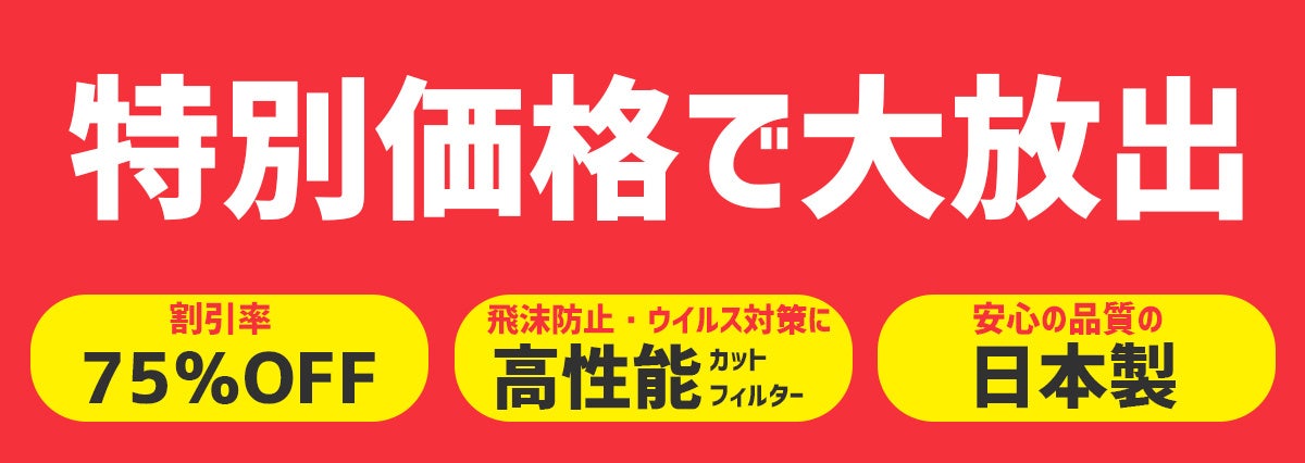 【日本製不織布マスクが1箱(50枚)750円 / 75%OFF】自社工場(大阪八尾工場)製造の0.1μm微粒子を99.6%カットする医療用レベルのマスクを特価で大放出!
