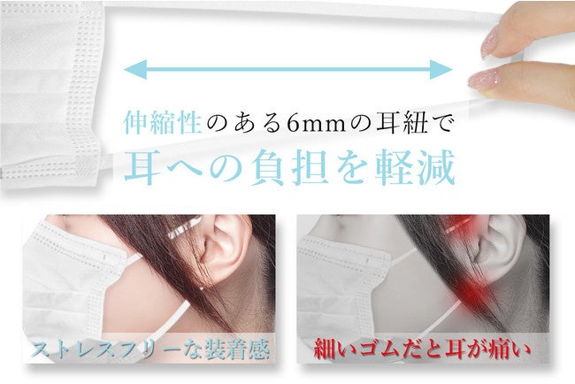 耳への負担を軽減し、長時間の着用でも耳が痛くならない”ストレスフリー”な仕様となっております。