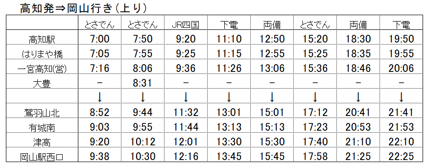 高知発→岡山行きの最終便は22:25着のため、当日中に山陽新幹線への乗継も可能です。