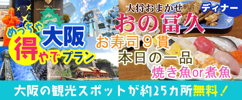 新プラン登場!!なんばのお寿司屋さん!「おの冨久」大将おまかせランチorディナー!大阪市内25以上での無料スポットを楽しめて+グルメがついた 大阪めっちゃ得やでプランを販売開始。