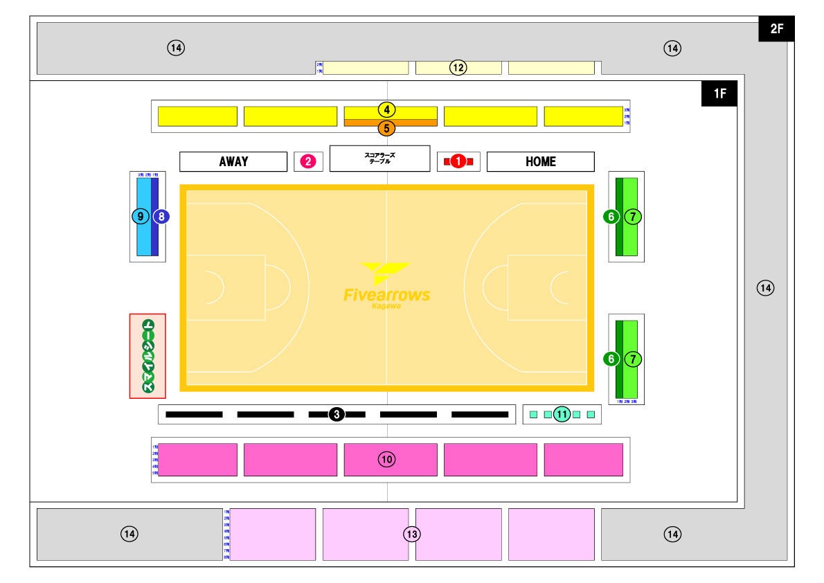 ・スマイルシート位置のイメージ画像⇩ ※画像は高松市総合体育館の会場図です。