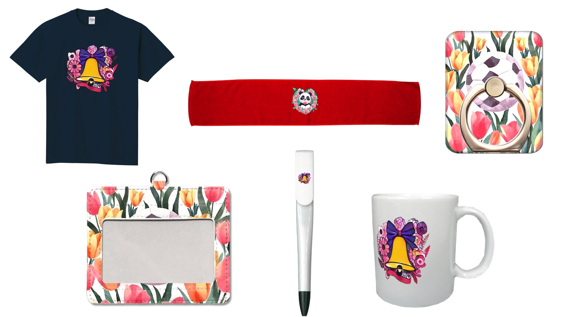 取り扱いアイテム:Tシャツ、スマホケース、文房具、のぼり旗他(毎月2アイテムずつ追加!)