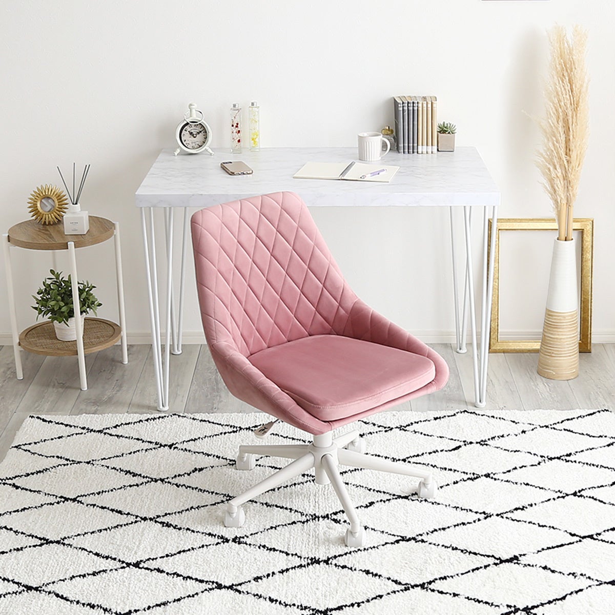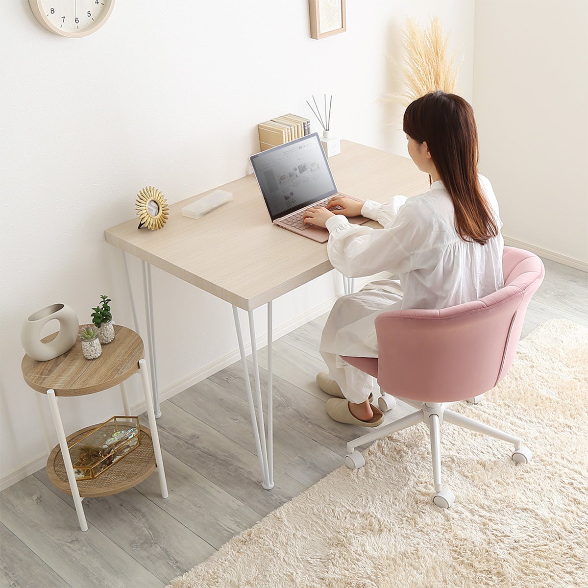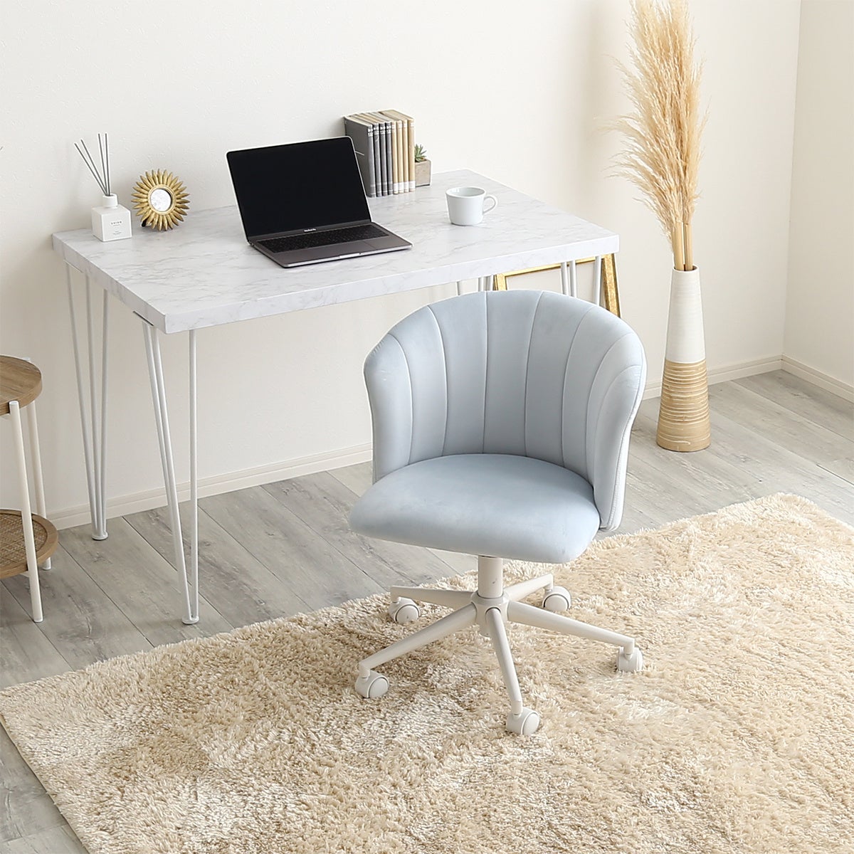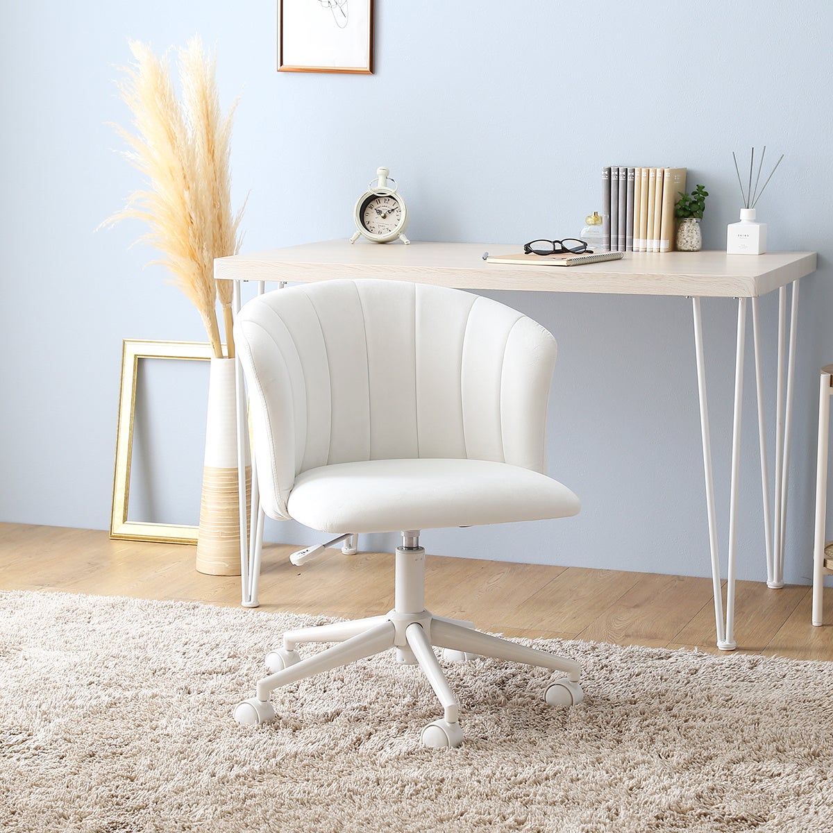 座面部分はくすみカラーで肌触りの良いスエード調の生地を採用。ピンク・ホワイト・ベージュ・グレー・ライトブルーの5色展開で、360°どこから見てもかわいいデザインです。各パーツの色にも徹底的にこだわり、脚やキャスター、支柱やレバーまで、オールホワイトで統一。大人かわいいテイストを追求しました。長時間座っても疲れにくいふかふかなウレタン座面を採用しておりデザイン性と機能性を兼ね備えたワークチェアです。ぜひニトリネットからお買い求めください。
