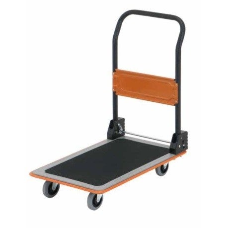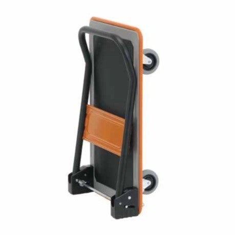 両製品ともに、均等荷重200kgの台車です。静音キャスター使用で運搬時の「ガラガラ」音がしないので、夜間作業やオフィス内でもお使いいただけます。また、使わない時はハンドルを折りたたんで収納可能。自立式なので場所をとりません。上記の性能に加え、「軽快台車 タフラック 200kg」はハンドル・荷台がともにスチール製、荷台は厚さ約20mmと丈夫なつくりになっています。「軽快台車 カルラック 200kg」は荷台をメッシュ構造にすることで、均等荷重200kgながらも本体重量約6.7kgと、軽量化を追求しています。