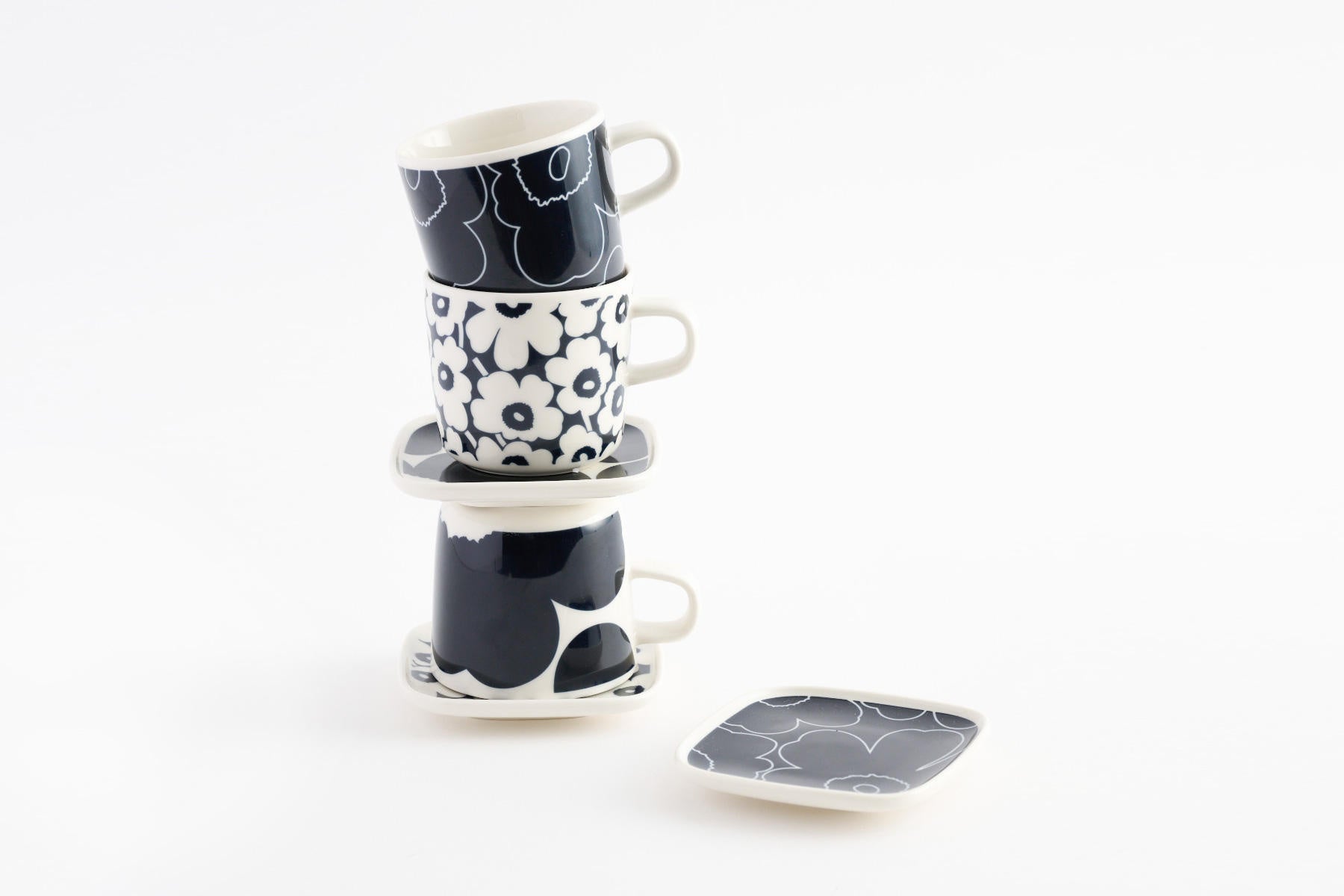 ウニッコ 60周年記念アイテムとして、ネイビー×ホワイトのウニッコのホームコレクションが登場。ビッグスケールのイソ ウニッコ(Iso Unikko)、スモールスケールのピックイネン ウニッコ(Pikkuinen Unikko)、グラフィカルなピィイルト ウニッコ(Piirto Unikko)、3種のウニッコデザインのアイテムからは、タイムレスでありながらモダンなムードが漂います。