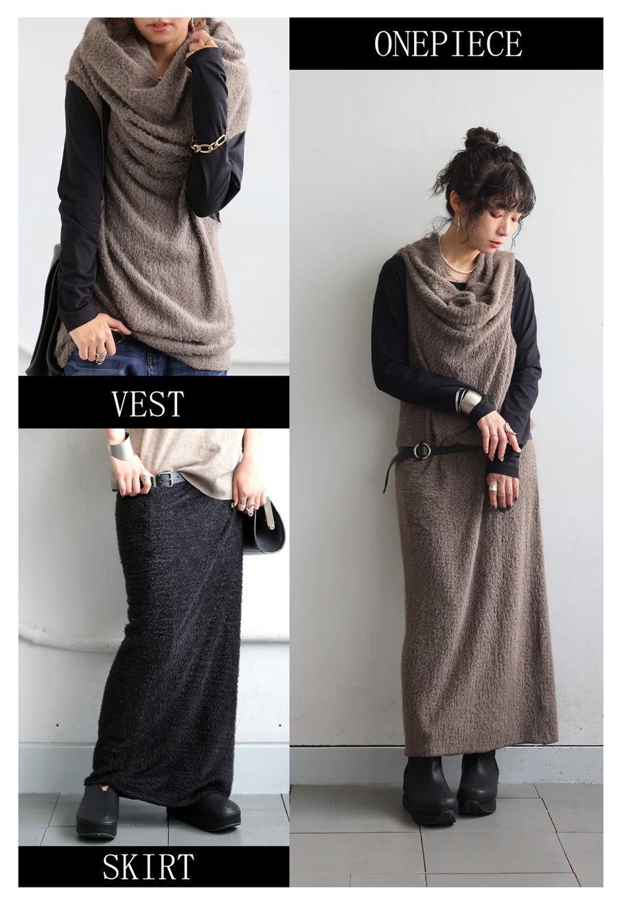 立体的な籠編み風デザインが印象的な、レイヤードコーデに映えるユニセックス仕様のニットベストです。