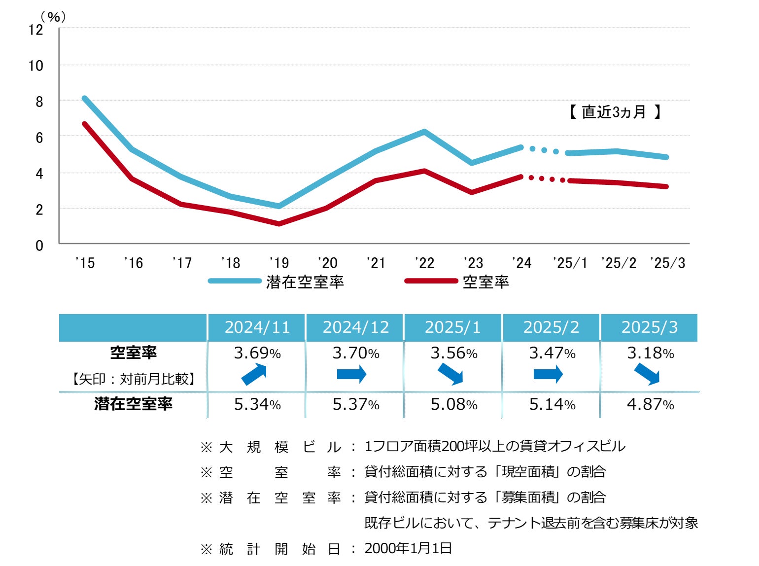 三幸エステート株式会社(本社:東京都中央区、取締役社長:武井重夫)は、2025年3月度の大阪市オフィス賃貸状況(空室率&現空面積:大規模、募集賃料&募集面積:大規模、規模別空室率、主要3区※1空室率:大規模)および全国6大都市(東京・札幌・仙台・名古屋・大阪・福岡)の大規模ビルのマーケットデータをまとめた「オフィスマーケット2025年4月号大阪」を公表します。