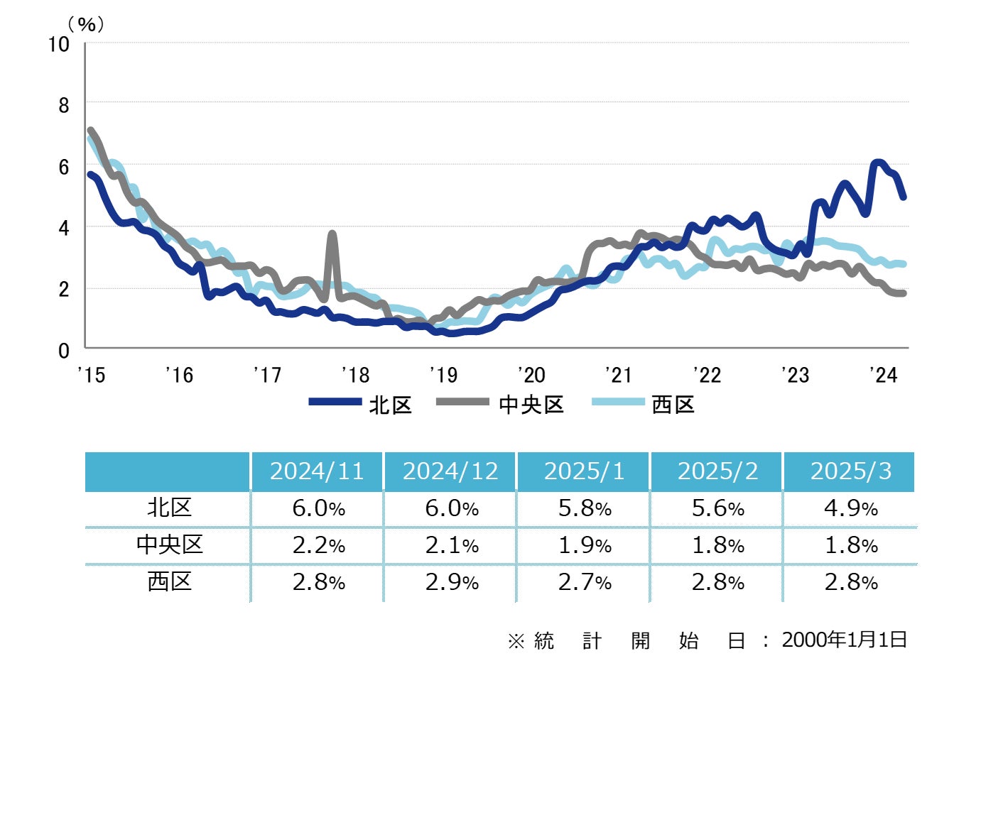 空室率 3ヵ月連続の低下 「北区」は0.7ポイントの大幅な低下