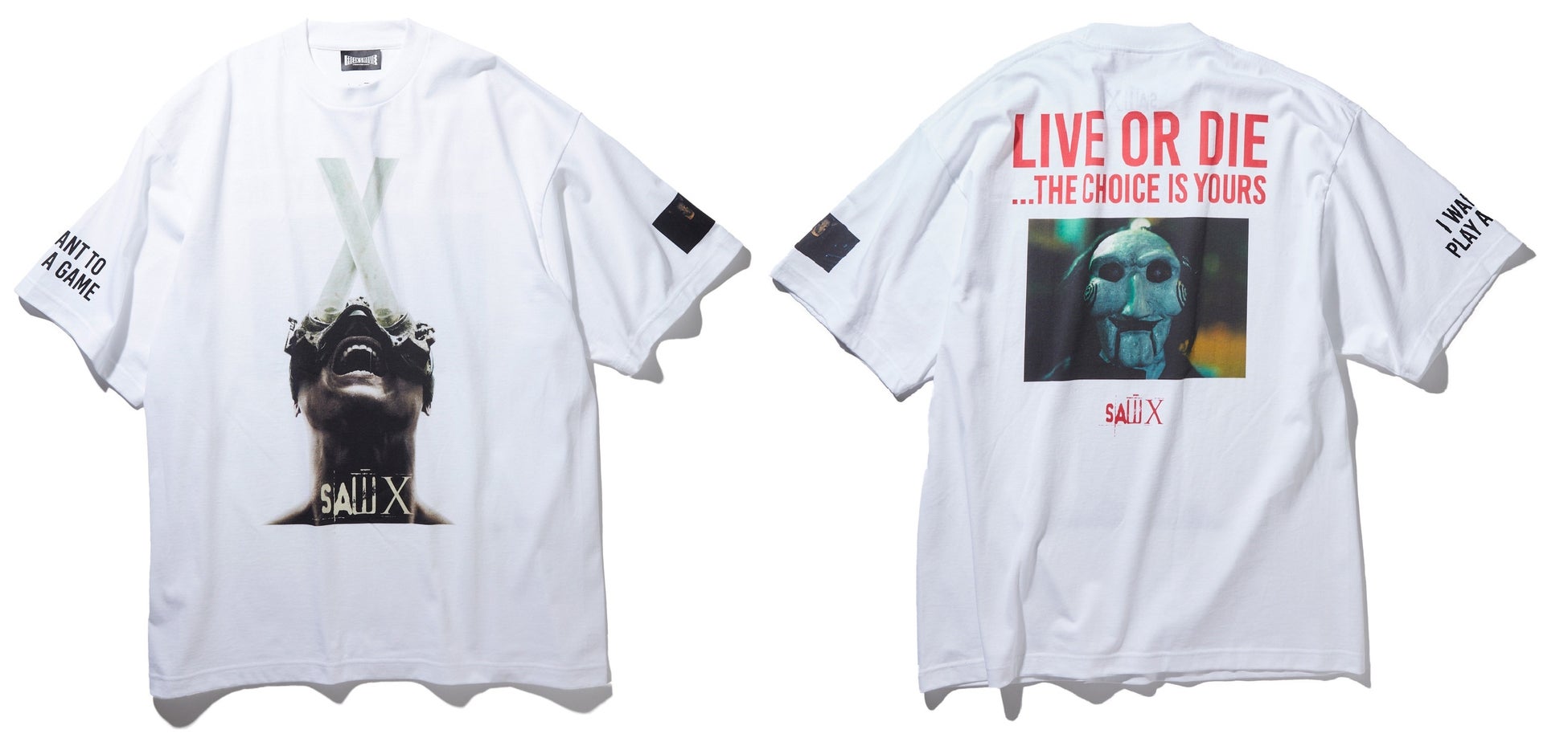 展開する公式グッズは、キービジュアルを大胆にフロントにプリントしたTシャツや、ビリー人形のプリント、また、「SAW」ならではのメッセージ「生きるか死ぬか...選択はあなた次第」がプリントされたものなど、デザイン豊富にラインナップ。また、ホラー映画グッズでは珍しい、アメリカンカレッジ感満載なスウェットも展開。Tシャツは程よくざっくりとした7.1オンスの生地感で適度なルーズシルエット、縮みや型崩れの少ないボディながらも、洗いこむほどに生地表面の味わいが増していきます。