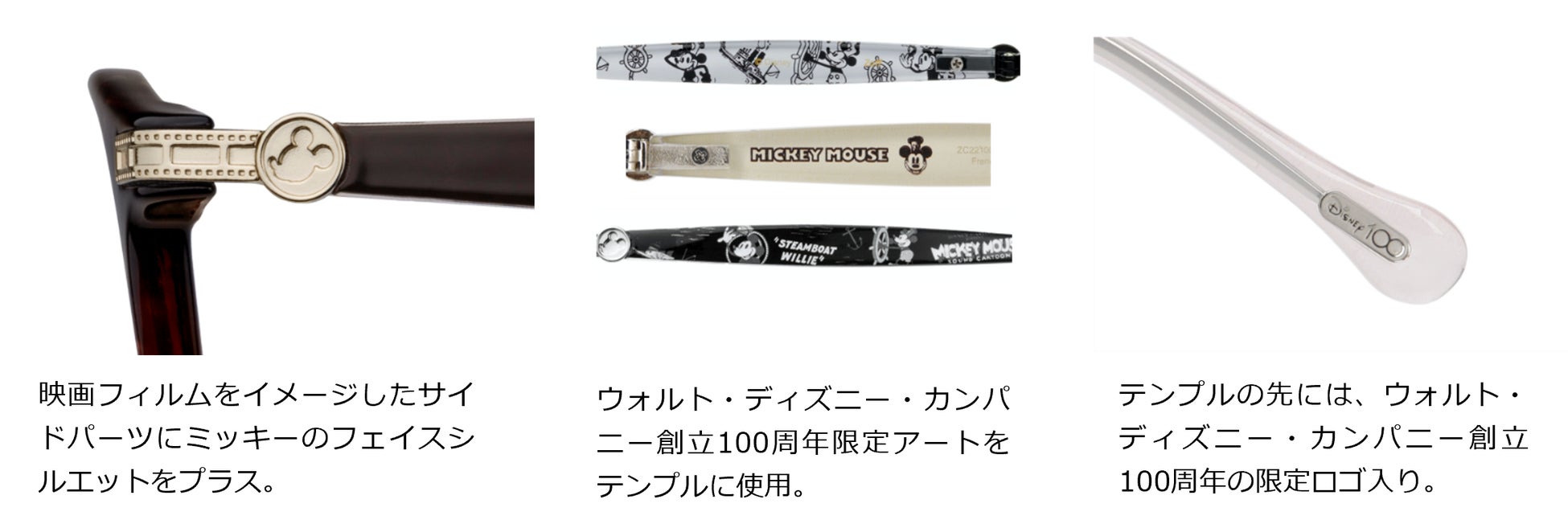ウォルト・ディズニー・カンパニー創立100周年限定の『蒸気船ウィリー』のアートを使用。特別な一年をアイウェアと一緒にお祝いしましょう。