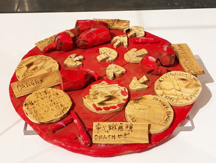 一見ポップで愛らしい真っ赤なピザ。しかしそのタイトルは「DEATHピザ」。辛いものをこよなく愛する作者が、激辛カレーをきっかけに着想した作品です。ピザの上には「本当に危険です」「やめてください」「忠告を無視して食べることは考え直してください」といった注意書きが添えられ、ユーモアの中に他者を思いやる優しさが表現されています。