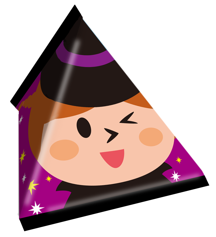 ジャックオランタンやおばけ等のかわいい三角形個包装は全8種類。(ランダム封入)