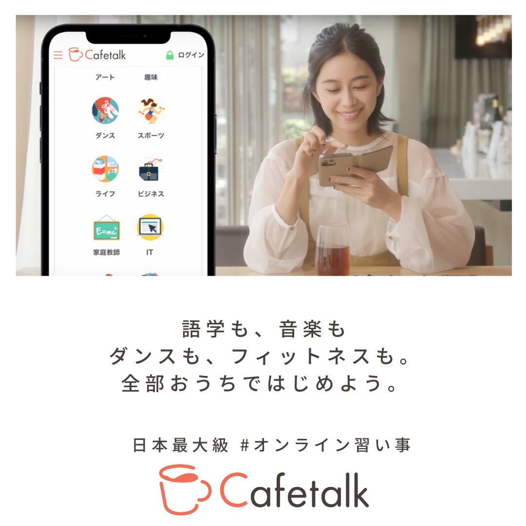 「カフェトーク」とは、「いつもの生活に世界のスパイスを」をコンセプトに、スカイプやZoomを使って、90カ国を超える世界中の講師からマンツーマンのオンラインレッスンが受講できる、日本最大級のオンライン習い事レッスンサイトです。
